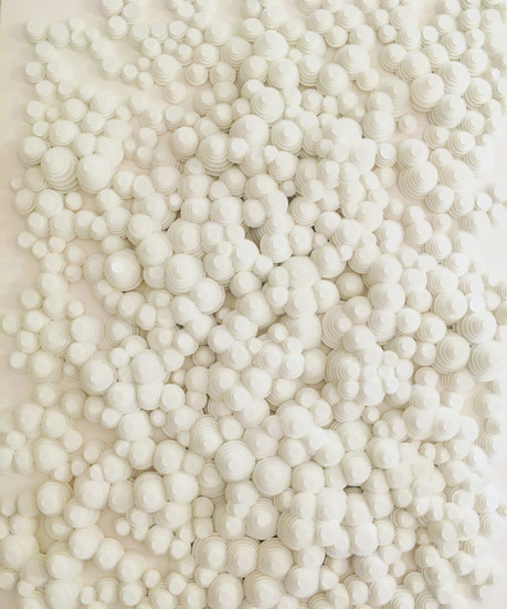 There is a quiet [obsessive] flow of repetition in his work, each whole and independent of the former. Guy is in his world of spherical colonies with no beginning and no end.